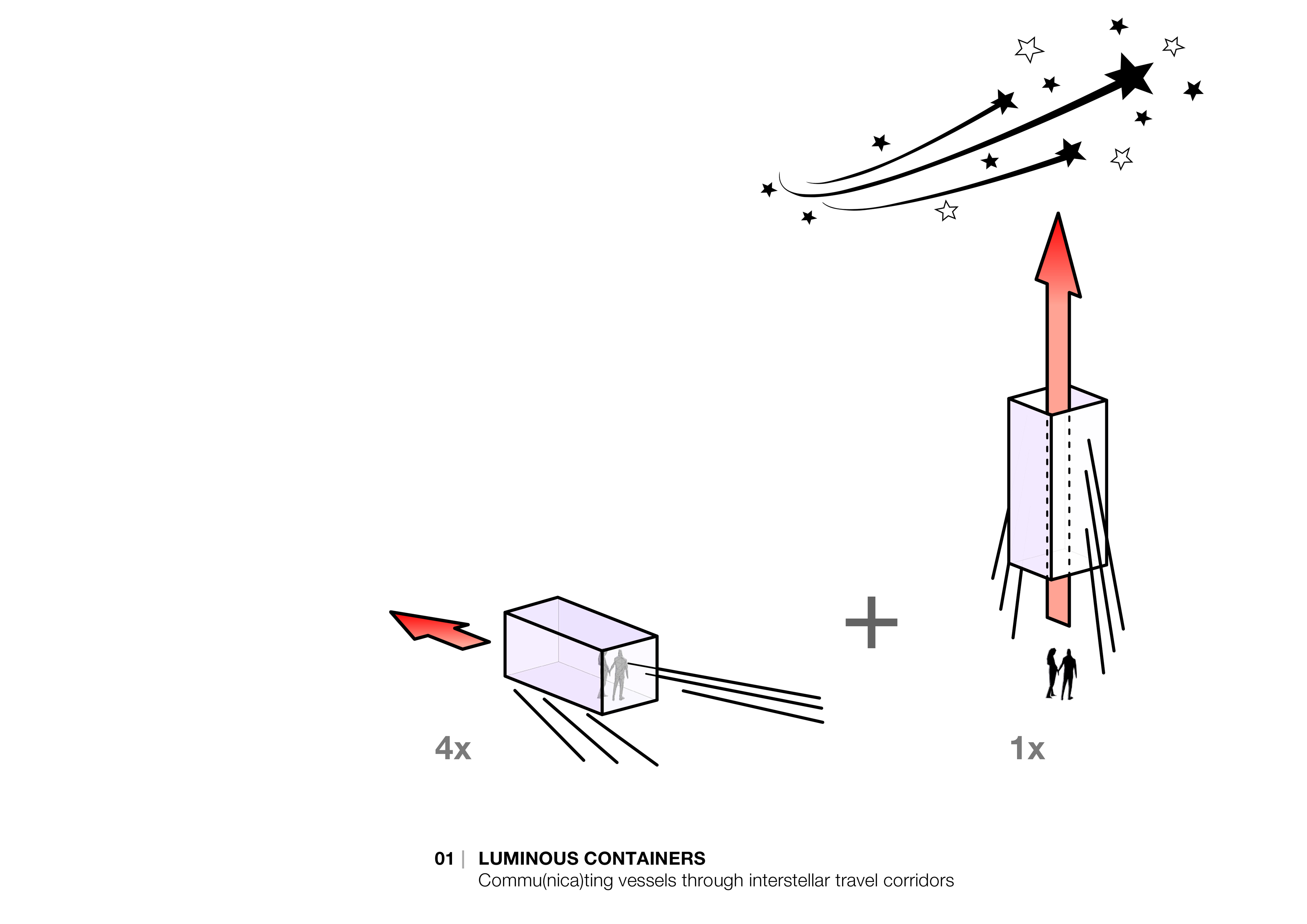 由于疫情之故,集装箱变的相当稀少,因此使用替代材料来建造作品。轻质半透明聚碳酸酯面板还原了集装箱的造型,创造出水平的发光箱体。它们由相互连接的光线作为引导 – 使游客能够探索 未知的动线。